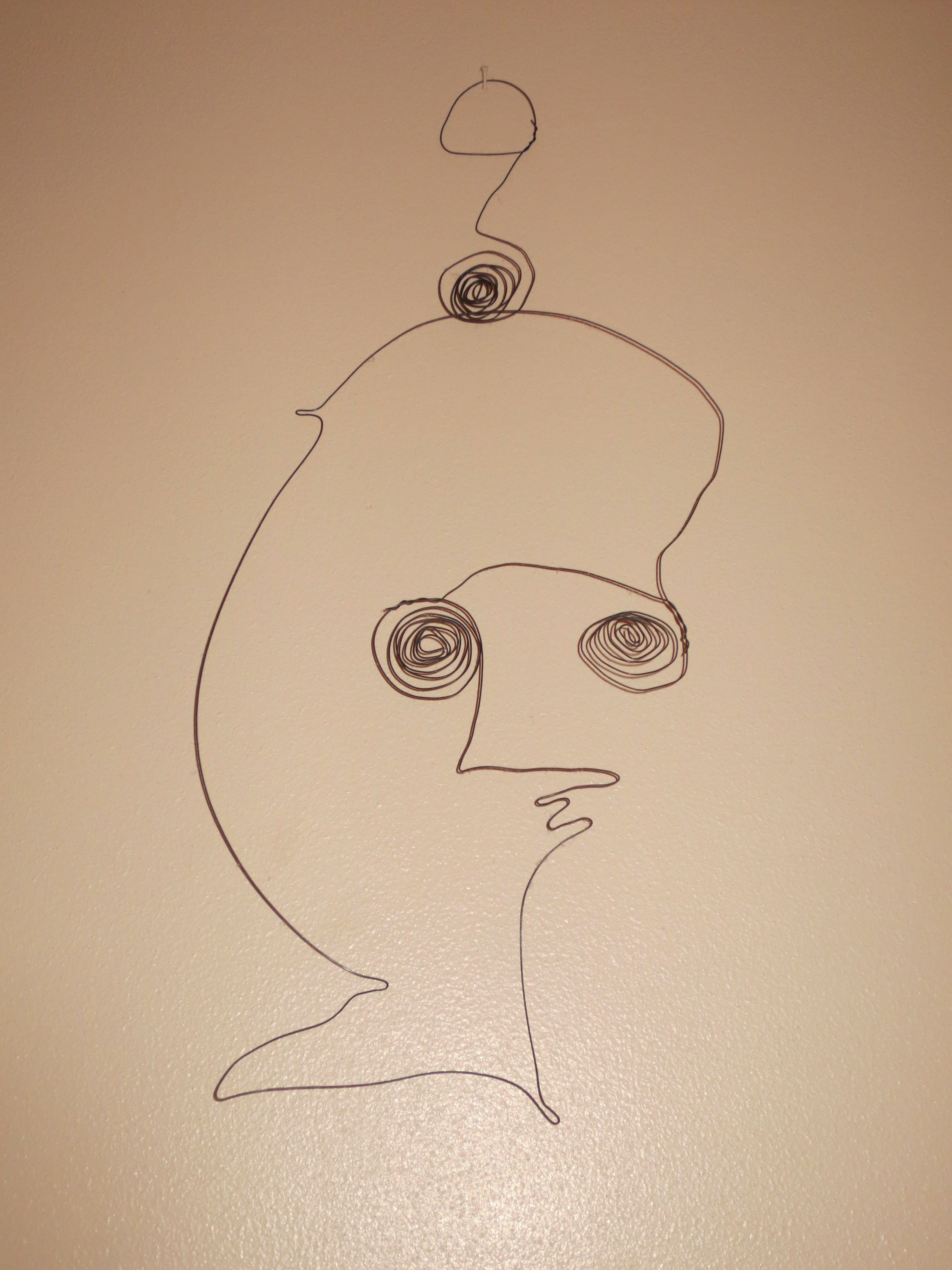 I was really proud of this one. I had just started to be willing to make things so I had a brand new wire cutter, a different little kid notebook and some copper wire for which I had paid $4. I was carrying it with me in my purse. A little satchel of creativity or a bag of evidence, depending upon how you looked at it. Since I am terrified of being misunderstood and breaking rules I think I actually made this face so that if for some reason I was stopped by the police I could produce something that would prove I wasn’t building some sort of bomb.